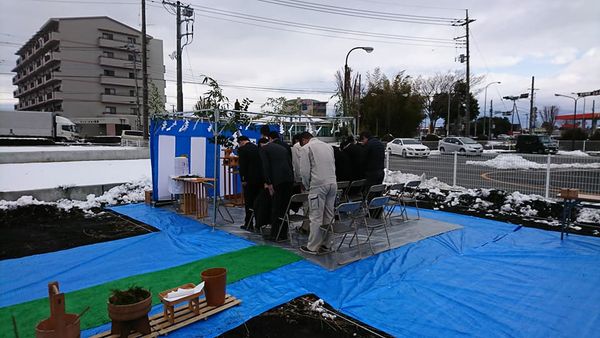 昨日、雪が少し残る中、「ガレント御殿場インター北」の地鎮祭をしました。